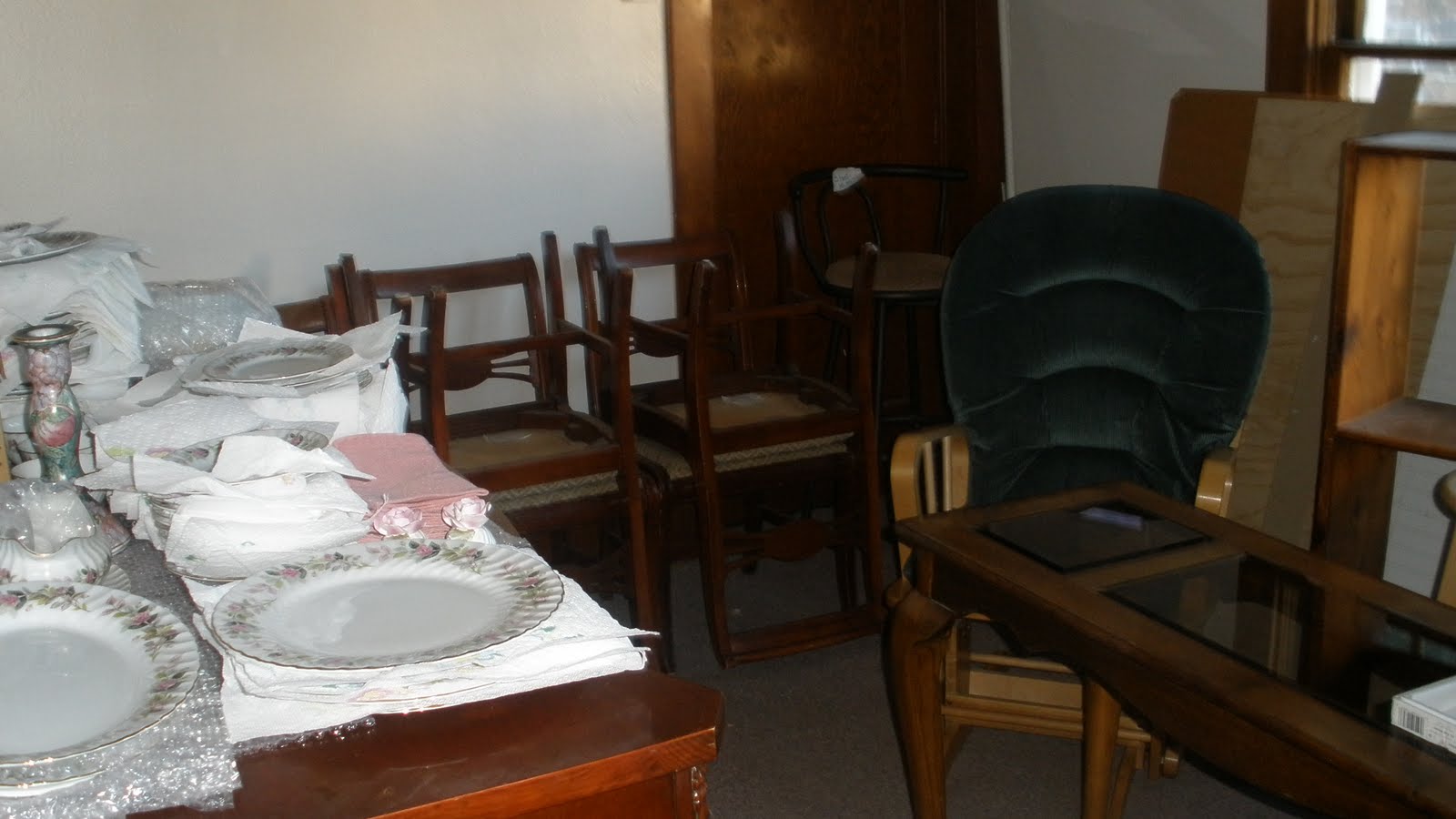 Step Five: Un-load the last two trailer loads into my sisters vacant home that is for sale. Thanks Sis! Two bed rooms, a living room, dining room, kitchen, front porch and drive way FULL.